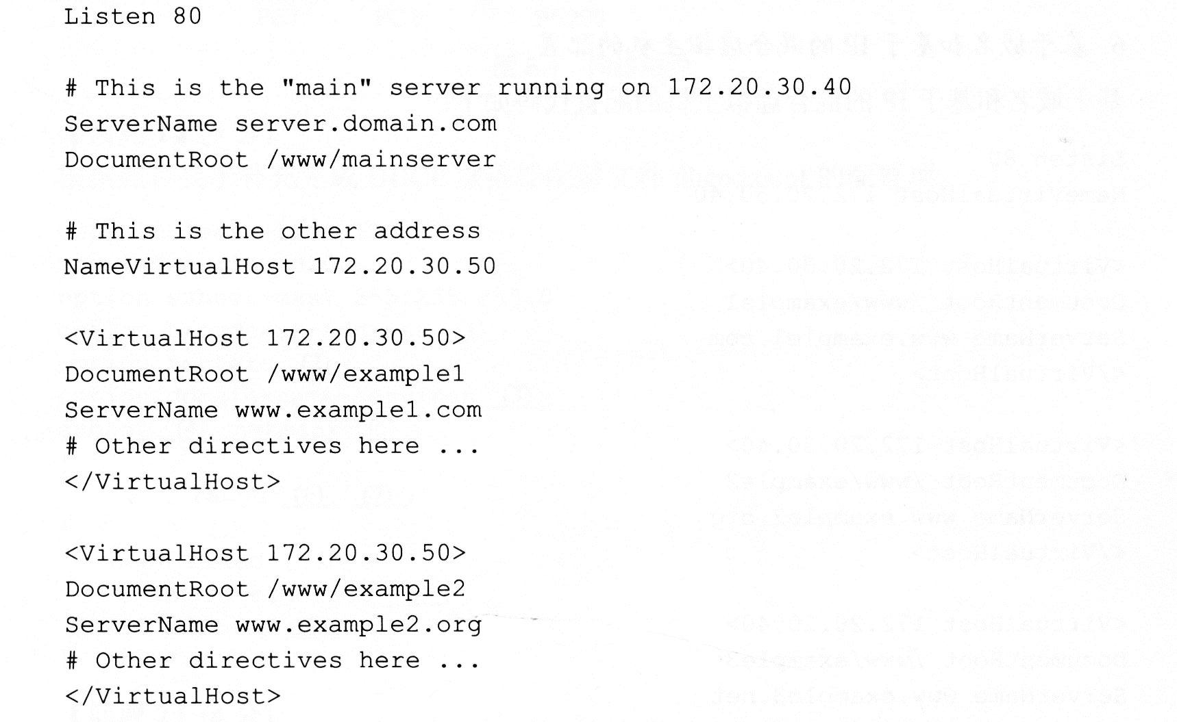 在多个IP地址的服务器上配置基于域名的虚拟主机的代码如下: