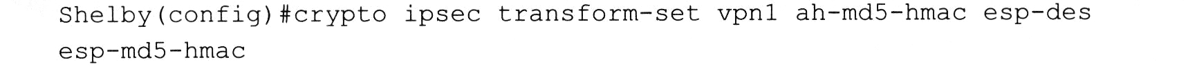 说明:在这里两端路由器唯一不同的参数是vpn1,这是为这种选项组合所定义的名称。在两端的路由器上,这个名称可以相同,也可以不同。以上命令是定义所使用的IPSec参数。为了加强安全性,要启动验证报头。由于两个网络都使用私有地址空间,需要通过隧道传输数据,因此还要使用安全封装协议。最后,还要定义DES作为保密密钥的加密算法。