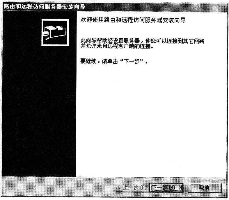 (5)系统启动"欢迎使用路由和远程访问服务器安装向导"界面,如下图所示,单击"下一步"按钮。