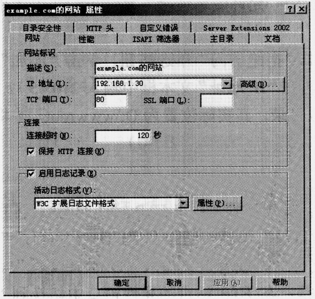 在"网站"选项卡中可以设置网站的标识,包括网站描述、IP地址和端口号,还可以设置连接超时、启用日志记录等,从网站日志记录中可以查看哪些用户访问了网站中的哪些内容,如下图所示。