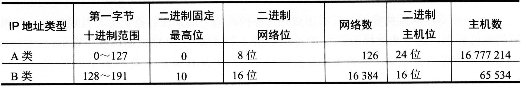 B类:一个B类IP地址由两个字节的网络地址和两个字节的主机地址组成,网络地址的最高两位必须是"10"。16位作为网络号,16位作为主机号,最多可以表示214(16 384)个网络号,每个B类地址主机数最多可有216-2(65 534)个。