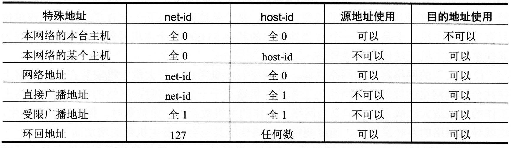 IP地址除了可用于标识一台主机外,还有几种用于表示特殊意义的形式,如下表所示。