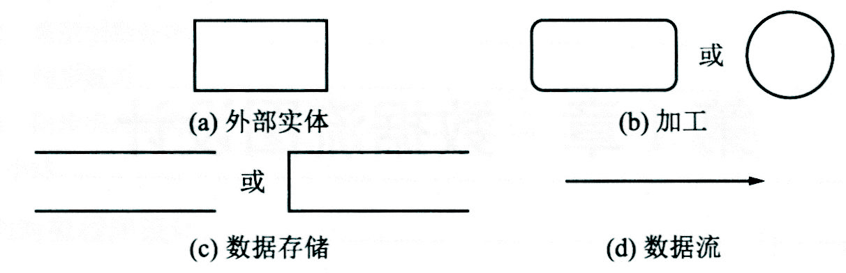 (4)数据流(Data Flow)。数据流由一组固定成分的数据组成,表示数据的流向。值得注意的是,DFD中描述的是数据流,而不是控制流。除了流向数据存储或从数据存储流出的数据流不必命名外,每个数据流都必须有一个合适的名字,以反映该数据流的含义。