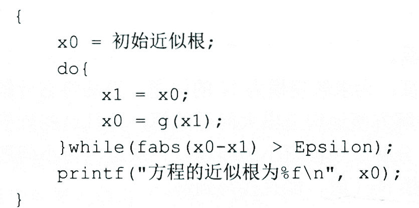 迭代法是用于数值计算近似求解的一种常用的算法,确定一合适的迭代公式,选一初始近似值及解的误差,循环处理实行迭代过程,终止条件是前后两次得到的近似值之差的绝对值小于给定的误差。