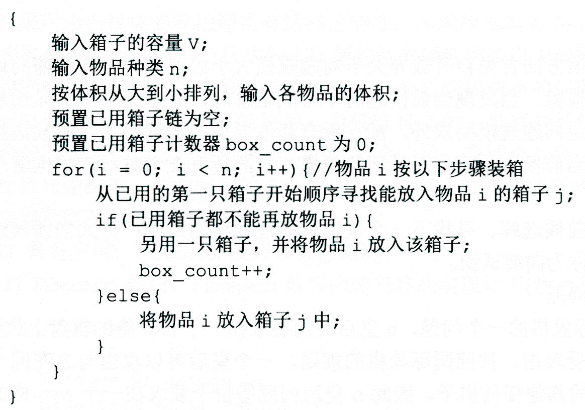 装箱问题可简述如下:设有编号为0, 1, …, n-1的n种物品,体积分别为v1, v2, …, vn-1,将这n种物品装到容量都为V的若干箱子里,约定这n种物品的体积均不超过V。不同的装箱方案所需要的箱子数目可能不同,装箱问题要求使装尽这n种物品的箱子数最少。