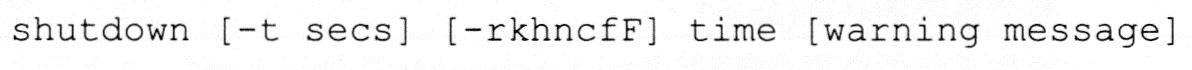 利用shutdown命令可以关闭系统中正在运行的所有程序,并可以根据用户的需要进入单人系统维护模式,或执行重开机、关机的操作。shutdown命令的语法如下:
