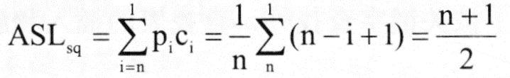 可见,在查找中与关键字的比较次数ci取决于所查记录在表中的位置,如查找表中第n个记录,仅需要比较1次;而查找表中第1个记录时,需要比较n次,即ci=n-i+1。因此,在等概率的情况下,成功查找时的顺序查找的平均查找长度为: