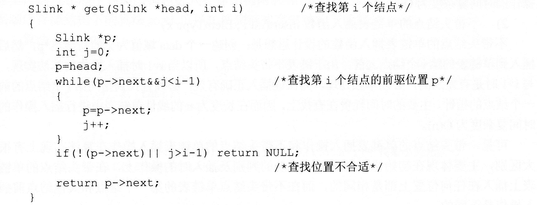 查找函数的设计思想是:在线性链表中查找元素要找元素前驱的指针。在长度为n的线性单链表中进行查找操作的时间复杂度为O(n)。查找函数的语句如下: