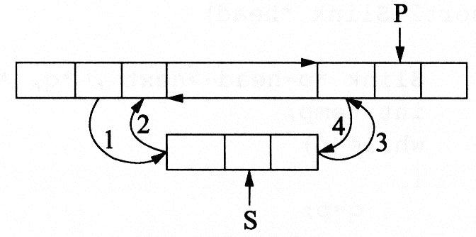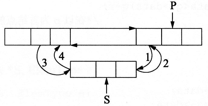 链表的指针修改必须保持其逻辑结构的次序,否则将违背线性表的特征,尤其是进行插入和删除操作。下面通过双向链表的插入操作来说明,若在如下1图所示的P所指向的结点之前插入一个S所指向的结点,则需要进行指针的修改,修改指针的策略有两种,如下2图和下3图所示,指针的修改次序为1,2,3,4。根据线性表的性质可知,下2图可保证指针修改成功;而下3图中指针修改不成功,主要原因是其首先将P的前驱指向S,这样P结点的原前驱结点就不能找到了,因而指针修改步骤3和4不成立。
