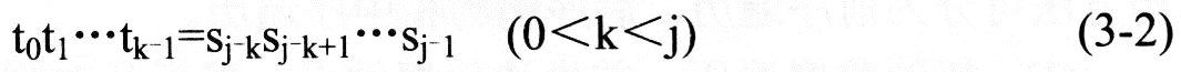 则由式(3-1)说明模式串中的子串t0t1…tk-1已和主串si-ksi-k+1…si-1匹配,下一次可直接比较si和tk,若不存在式(3-2),则结合式(3-1)说明在t0t1…tj-1中不存在任何以t0为首字符的子串与si-jsi-j…si-1中以si-1为末字符的匹配子串,下一次可直接比较si和t0。