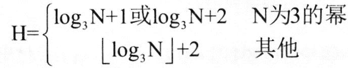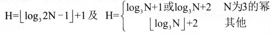 (2)设含N个叶子结点的完全三叉树的高度为H,则3H-2≤N≤3H-1,即
