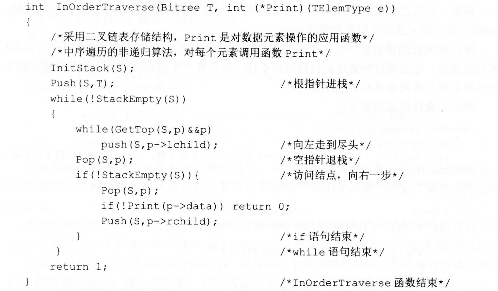 二叉树的前序、中序和后序遍历的非递归算法分别如下所述。