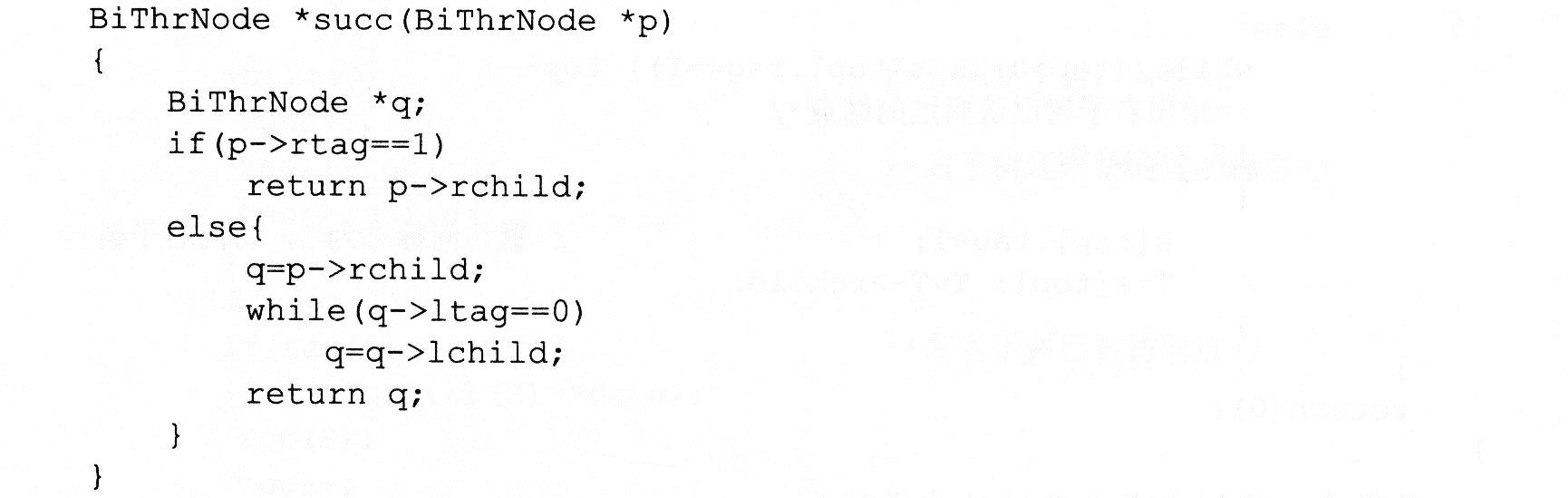 对给定的线索二叉树中的某个结点p,查找结点p的后继(中序),其特点为所有叶子结点的右链直接指示了后继,所有非终端结点的后继应是其右子树中第一个中序遍历的结点。