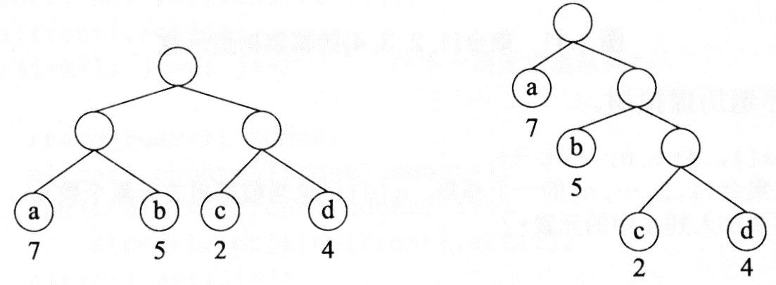 对下图给定的两棵二叉树,它们的带权路径长度分别如下。