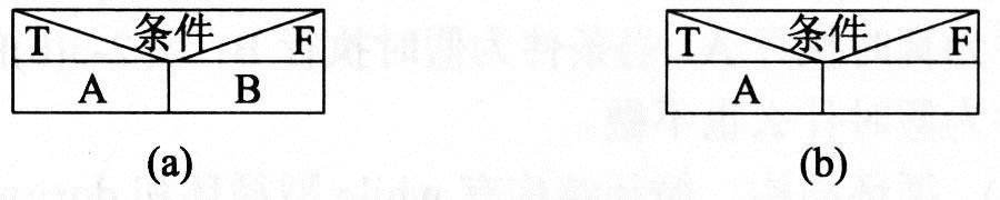对应于上图的N-S图如下图所示。下图(a)条件为真时执行A,条件为假时执行B。下图(b)条件为真时执行A,条件为假时什么都不做。