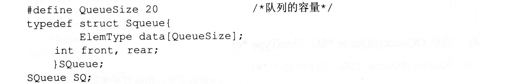 .队头指针的引用为SQ.front,队尾指针的引用为SQ.rear。