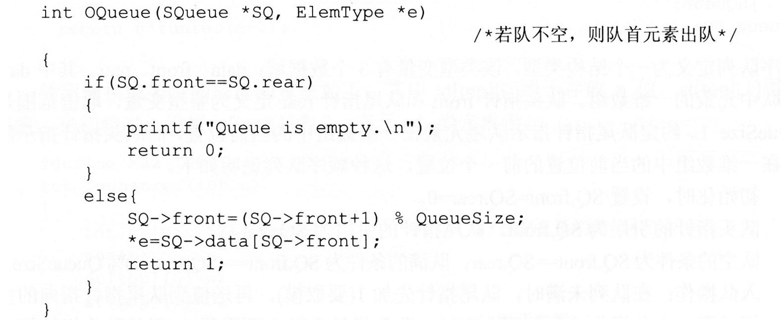 4)出队OQueue(SQueue *SQ, ElemType *e)