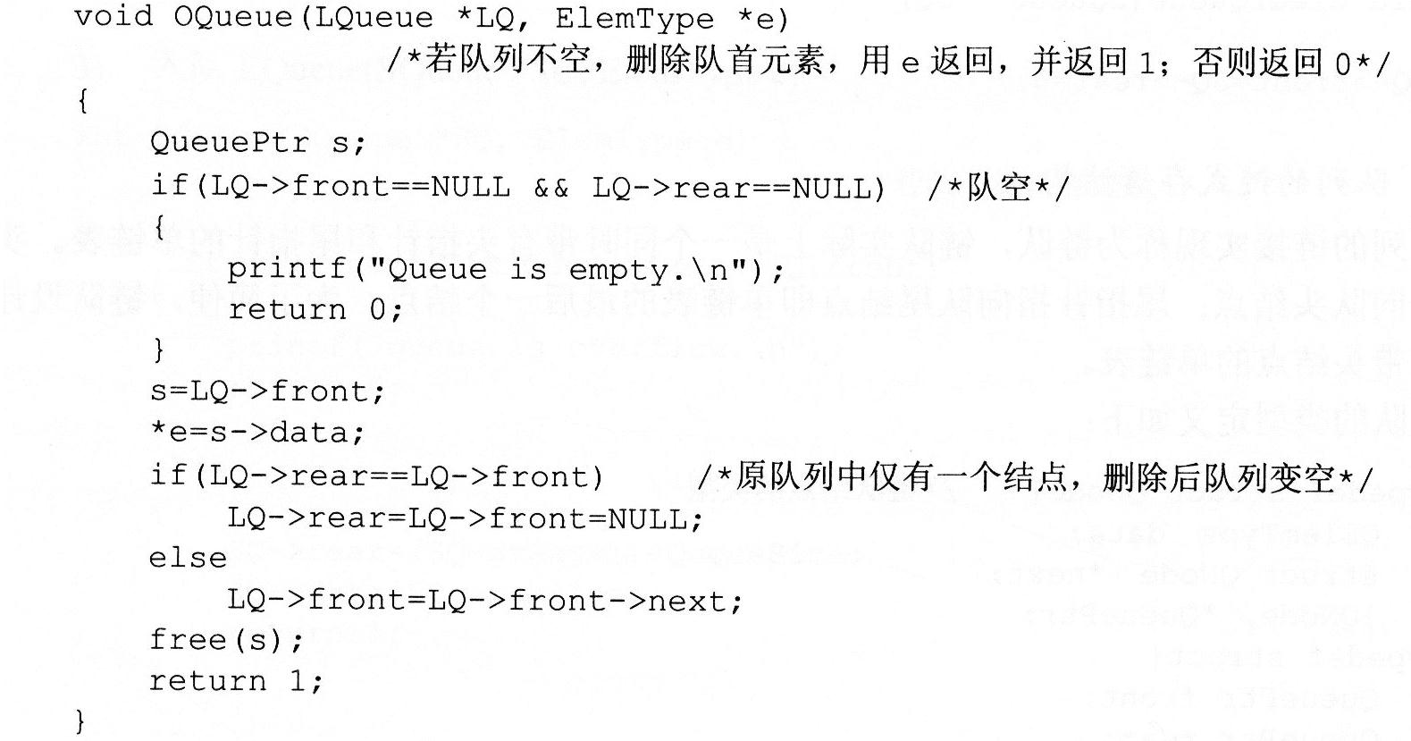 3)出队OQueue(LQueue *LQ, ElemType *e)