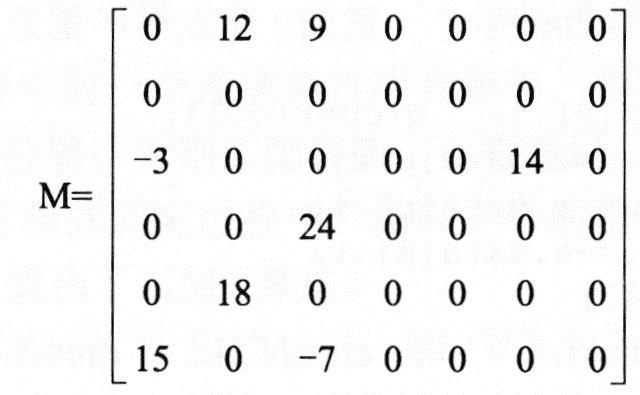 对如下图所示的稀疏矩阵,其三元组表示为(1,2,12),(1,3,9),(3,1,-3),(3,6,14),(4,3,24), (5,2,18),(6,1,15),(6,4,-7)。