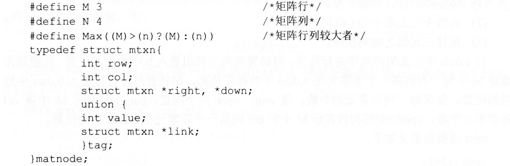 十字链表结点结构和带头结点的数据结构可定义如下: