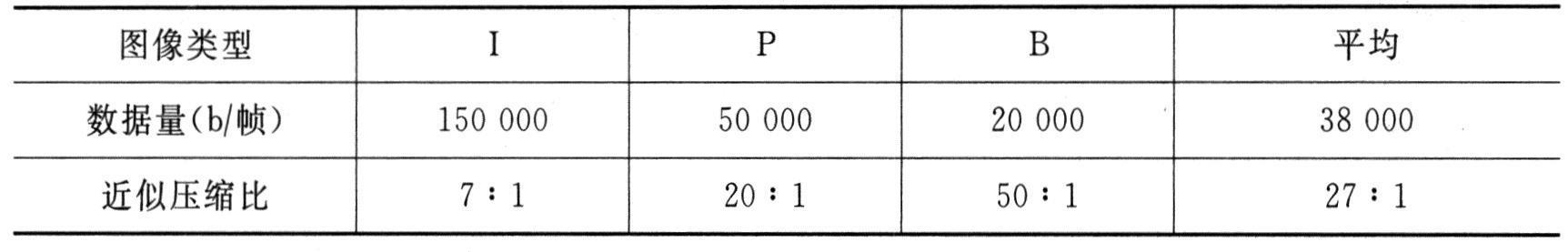 MPEG三种图像压缩后的典型值