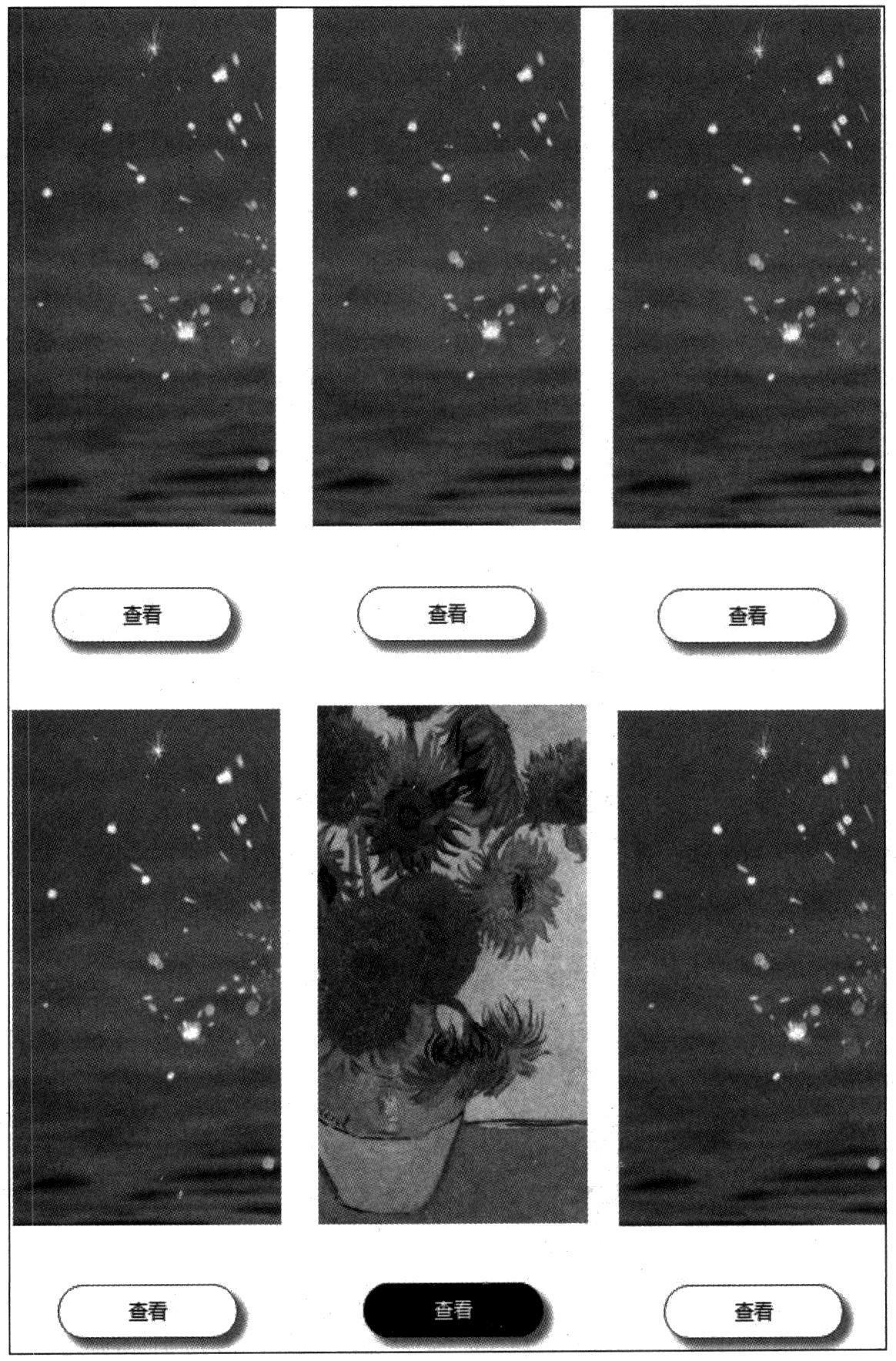 ⑥所有的“查看”按钮只能有一个改变颜色,并且只能将改变颜色的按钮对应的图片显示出来。