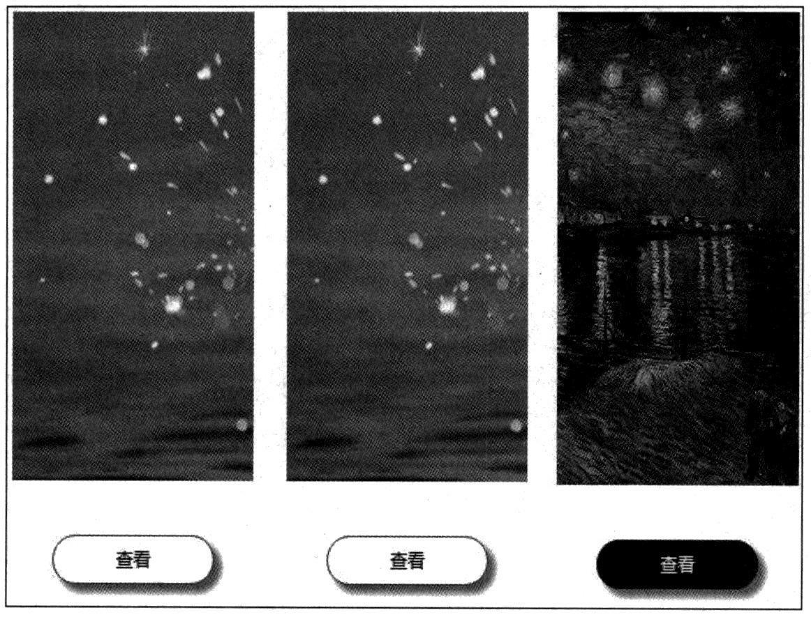 也就是说,点击同一个“查看”按钮可以切换显示或隐藏对应的图片,并且切换被点击按钮的颜色;当点击不同的“查看”按钮时,只能显示被点击按钮对应的图片,改变被点击按钮的颜色,其他图片和按钮会恢复初始状态。