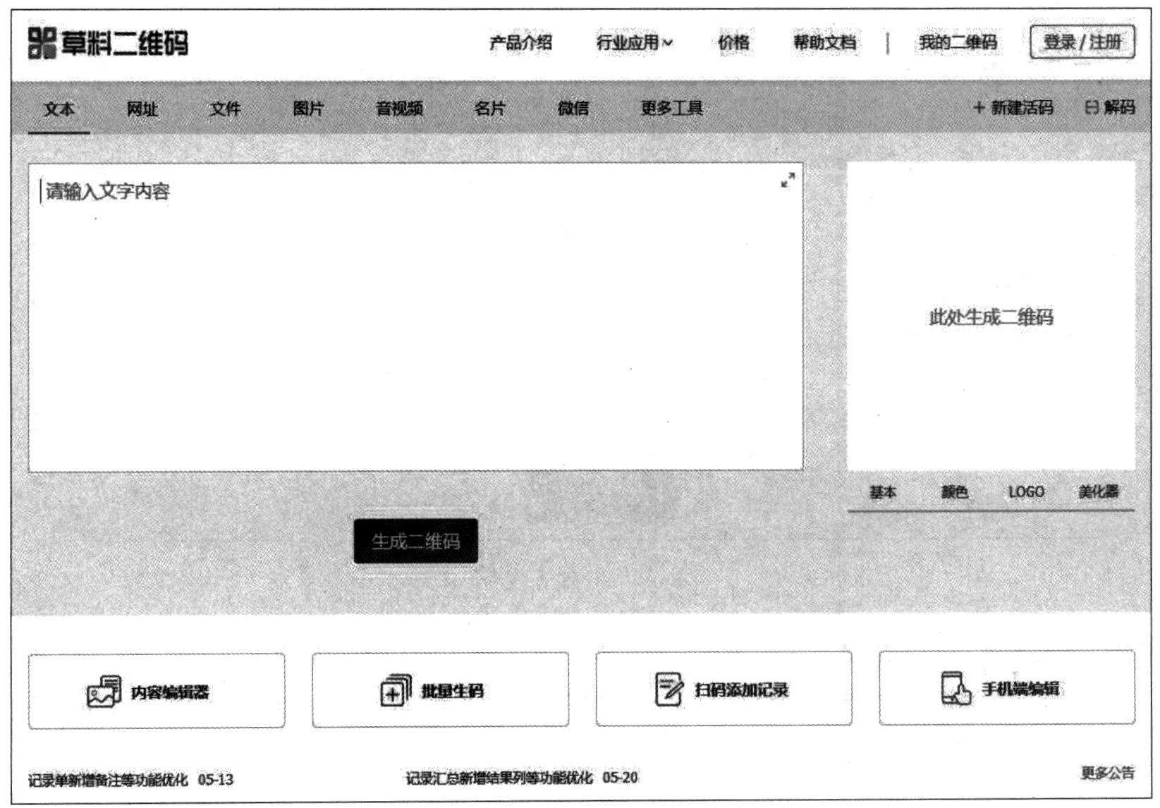 可以看到,该工具有很多功能,可以生成多种不同的二维码,如下图所示。