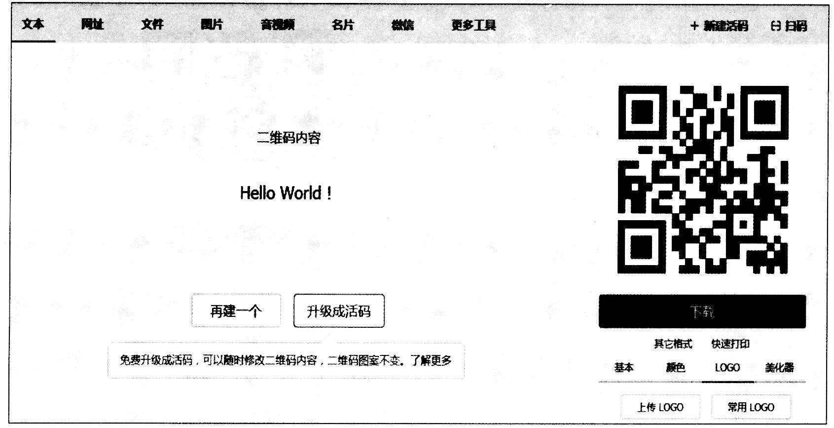 生成二维码后的效果如下图所示。还可以单击“下载”按钮,保存刚刚生成的二维码。
