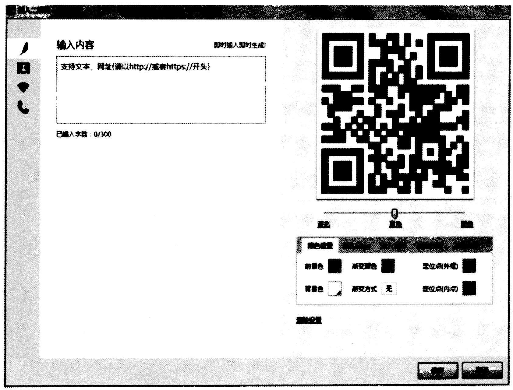 信息输入完成后,可以对生成的二维码的外观进行一些修改,按照喜好和美观程度进行设置,如圆角、液态、直角形式的二维码都不尽相同。还可以嵌入LOGO,文字、颜色和图案样式也可以修改,如下图所示。