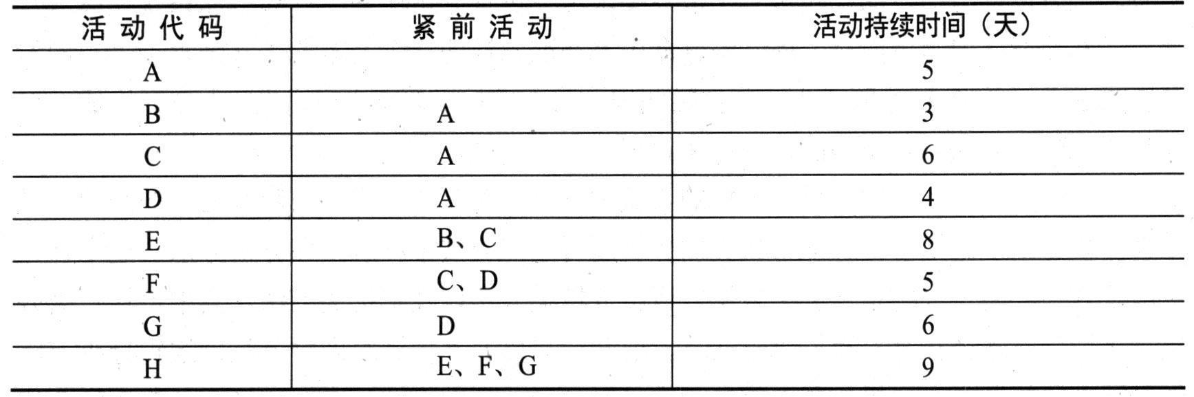 某项目细分为A、B、C、D、E、F、G、H共八个模块,而且各个模块之间的依赖关系和持续时间如下表所示。