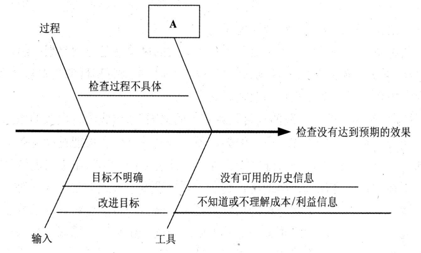 项目的开发按照所制定的流程规范进行。在需求分析、概要设计、数据库设计等阶段都按照要求进行了评审,编写了需求分析说明书、概要设计说明书、数据库设计说明书等文档。但在项目即将交付时,发现了很多没有预计到的缺陷与bug。这说明许多质量问题并没有像原来预计的那样在检查与评审中发现并予以改正。由于项目的交付期已经临近,为了节省时间,小赵让程序员将每个模块编码完成后仅由程序员自己测试一下,就进行集成测试和系统测试。在集成测试和系统测试的过程中,由于模块的bug太多,集成测试越来越难,该项目没有能够按照客户的质量要求如期完成。为了查找原因,公司的质量部门调查了这一项目的进展情况,绘制了下图所示的图形。