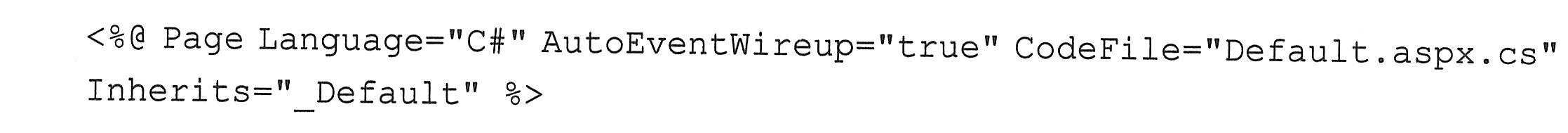 其中,CodeFile=“Default.aspx.cs”,说明该文件对应的服务器代码被定义在.aspx.cs类文件中。可以通过事件的方式将对应的程序代码写在.aspx.cs文件中,当然,也可编写其他符合C#语言的代码。
