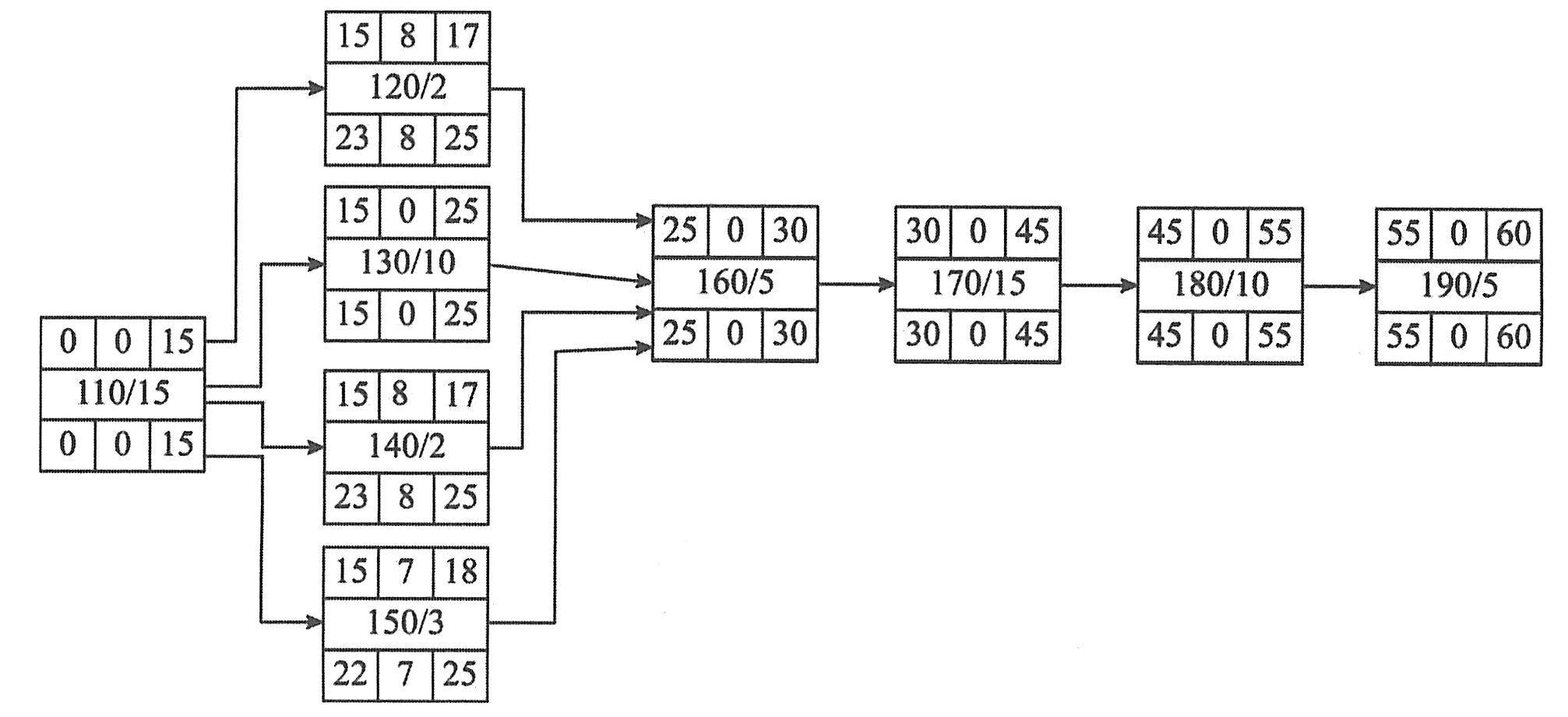 (2)通过网络图时间参数计算,找出关键工作和关键线路。