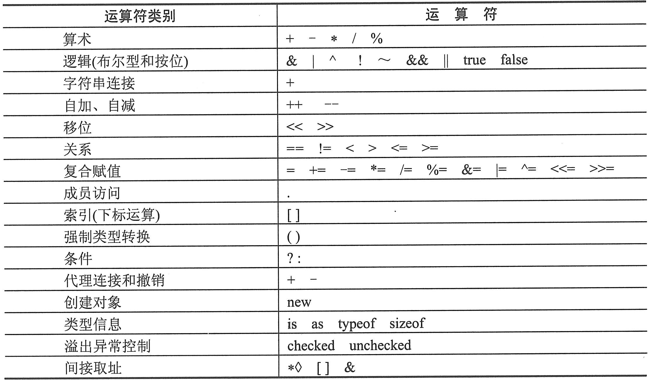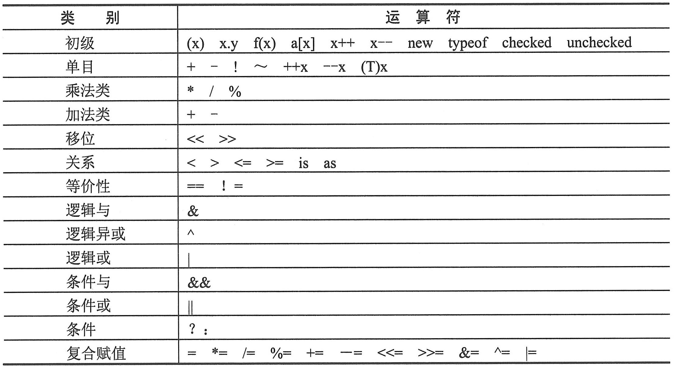 C#中的运算符如下表所示。