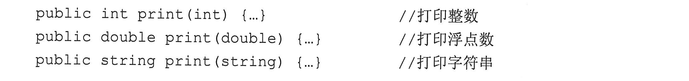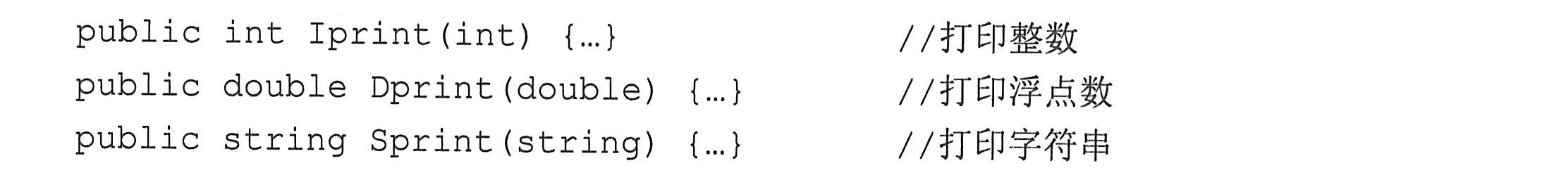 例如,以下是一些执行打印不同数据类型数据的打印方法,各种方法取不同的方法名。