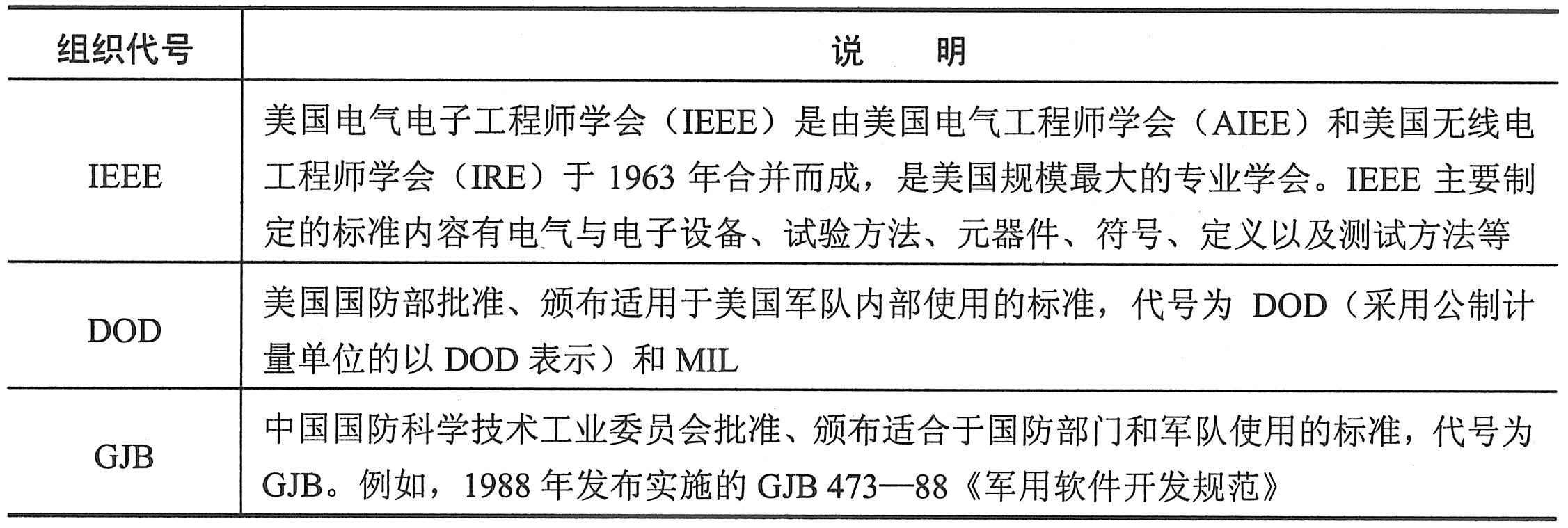 (5)国家标准化组织。国家标准化组织是指在国家范围内建立的标准化机构,以及政府确认(或承认)的标准化团体,或者接受政府标准化管理机构指导并具有权威性的民间标准化团体。这些组织主要如下表所示。