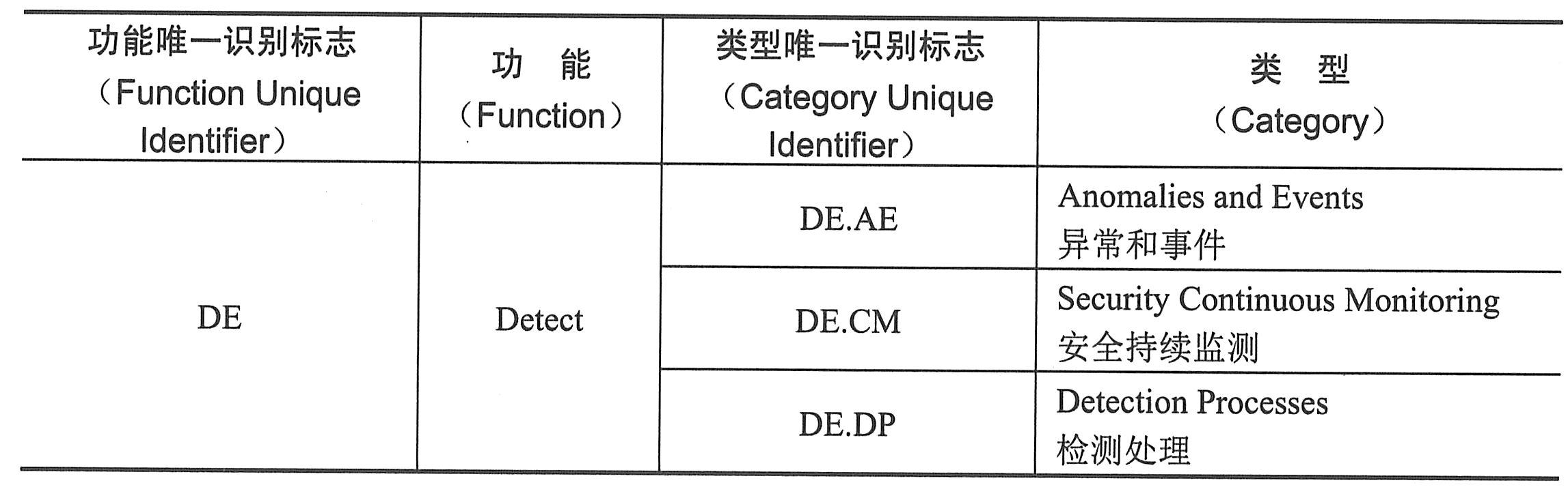 NIST网络安全框架检测功能对应分类表