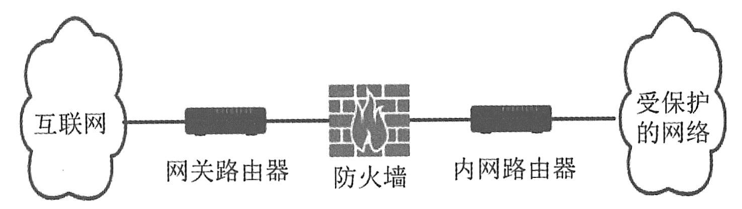 网络通信连接控制常利用防火墙、路由器、网关等来实现,通常将这些设备放在两个不同的通信网络的连接处,使得所有的通信流都经过通信连接控制器,只有当通信流符合访问控制规则时,才允许通信正常进行。下图是网络通信连接控制配置图。
