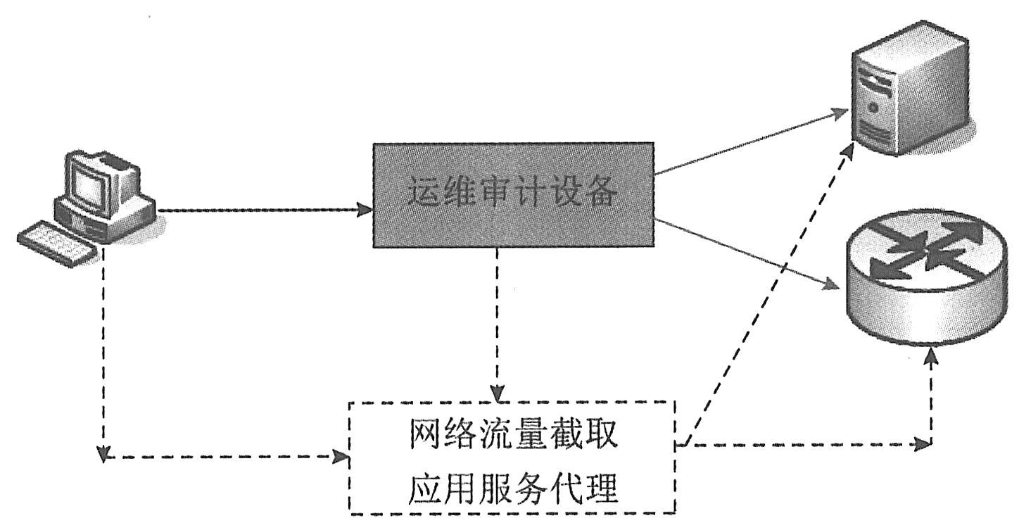 运维安全审计产品的基本原理是通过网络流量信息采集或服务代理等技术方式,记录Telnet、FTP、SSH、tftp、HTTP等运维操作服务的活动信息,如下图所示。