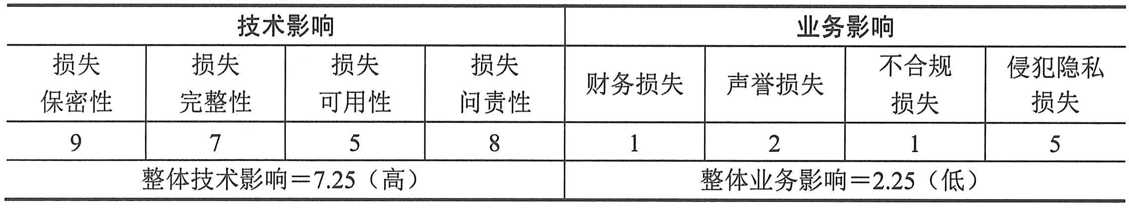 评估影响的因素主要有技术影响因素、业务影响因素。技术影响因素包括保密性、完整性、可用性、问责性等方面的损失;业务影响因素包括金融财务损失、声誉损失、不合规损失、侵犯隐私损失等。