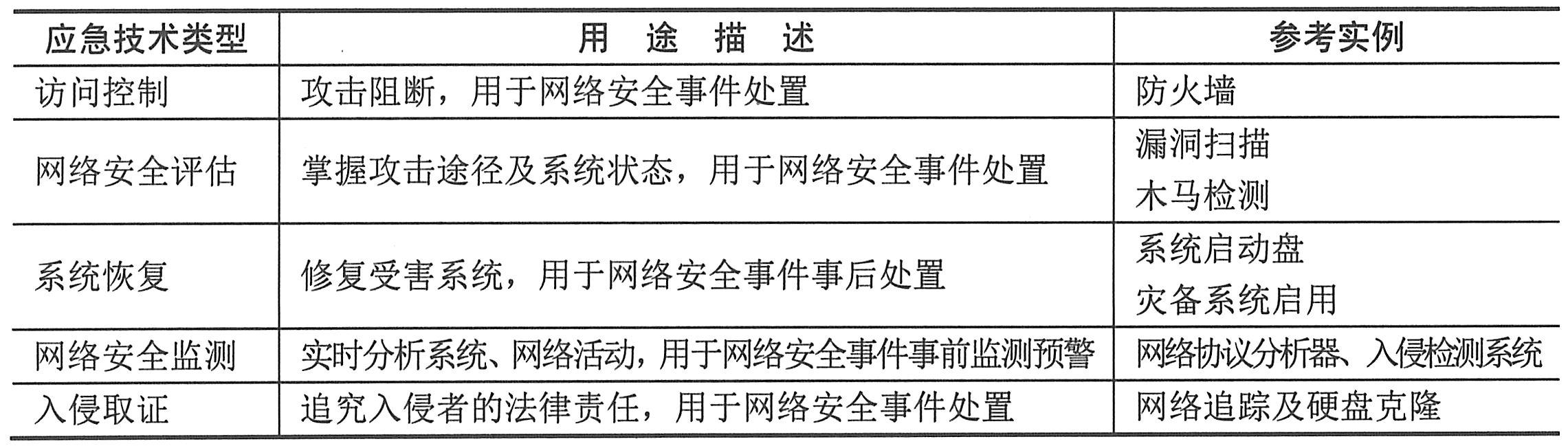 网络安全应急响应是一个复杂的过程,需要综合应用多种技术和安全机制。在网络安全应急响应过程中,常用到的技术如下表所示。
