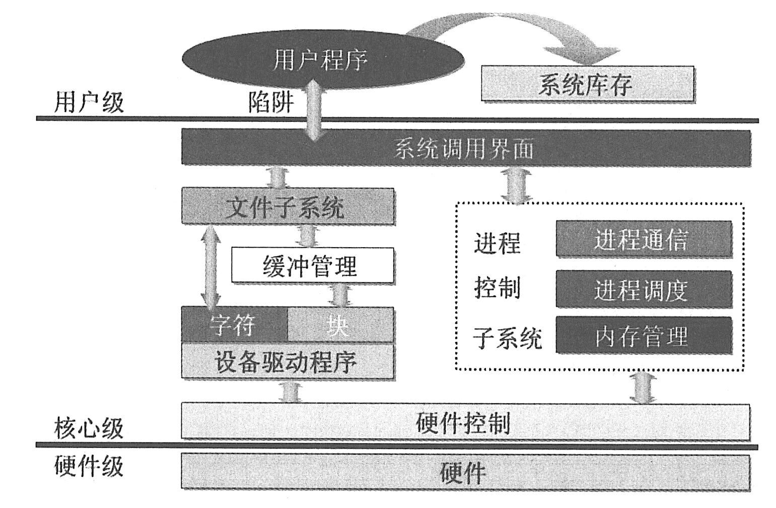 同Windows系统相比较,UNIX系统的历史更长。经过长期的发展演变,形成了多种具有不同特色的UNIX操作系统。如Solaris、AIX、HP-UNIX、Free BSD等。另外,还有一种开放源代码的Linux操作系统,它类似于UNIX系统,目前广泛应用在互联网上。虽然UNIX有不同的类型,但是在技术原理和系统设计结构上是相同的。一般的UNIX/Linux操作系统分为三层:硬件层、系统内核和应用层,如下图所示。