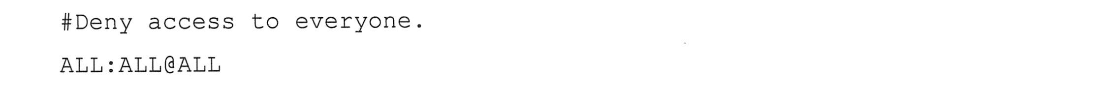 则所有服务对所有外部主机禁止,除非由hosts.allow文件指明允许。