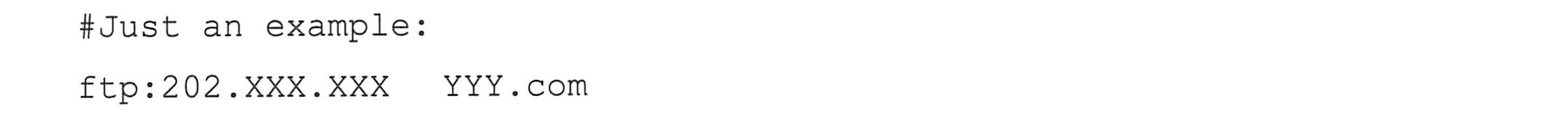 则将允许IP地址为202.XXX.XXX和主机名为YYY.com的机器作为客户访问FTP服务。
