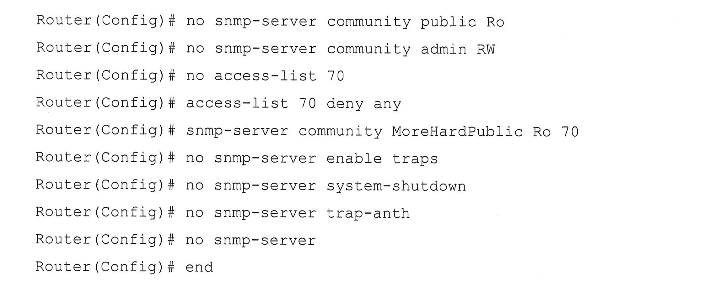 在禁止时必须删除一些SNMP服务的默认配置,或者需要访问列表来过滤。