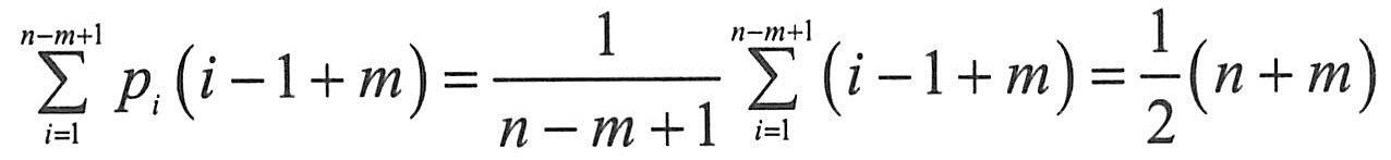 因此,在最好情况下匹配算法的时间复杂度为On+m)。而在最坏的情况下,每一趟不成功的匹配都是模式串的最后一个字符与主串中相应的字符不相等。若第i趟匹配时成功,则前i-1趟不成功的匹配加上最后一趟成功的匹配,每趟的字符比较次数都是m次,总共比较了i×m次。因此,最坏情况下的平均比较次数为: