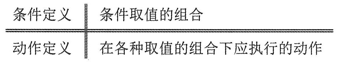 判定表由4部分组成,用双线分割成4个区域,如下图所示。