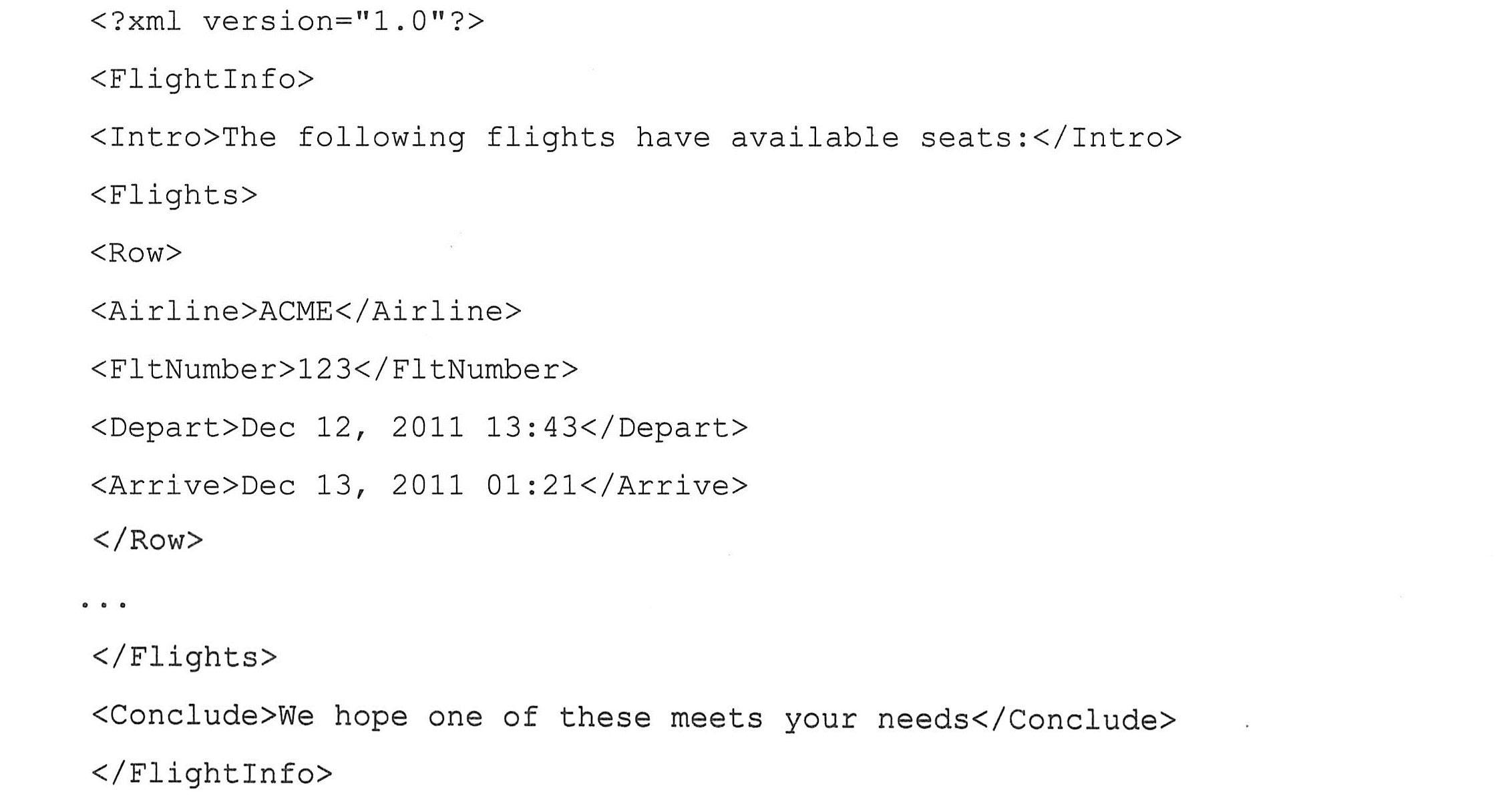 当数据传输中间件处理到该文档时,每个SELECT语句都将被各自的执行结果所替换,得到下面的XML格式: