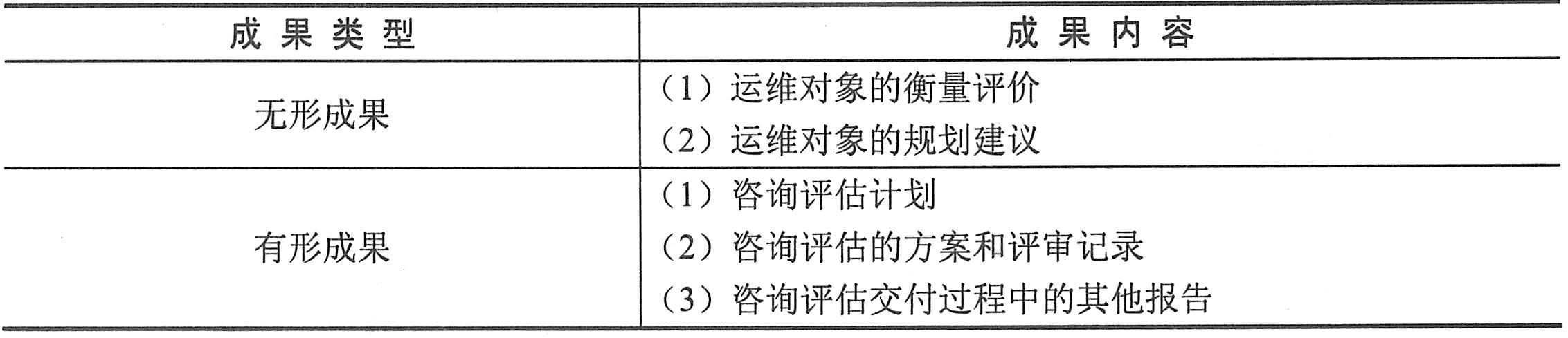 咨询评估运维过程将形成无形和有形两种形式的成果,如下表所示。